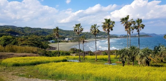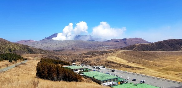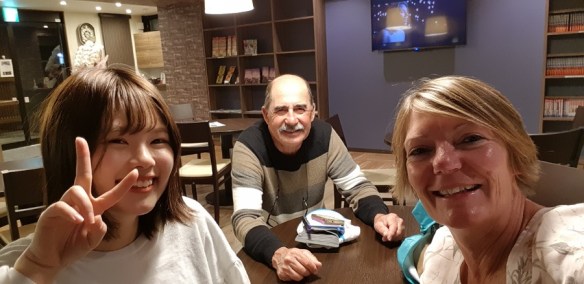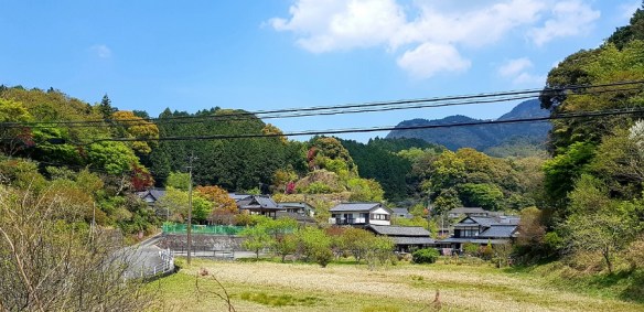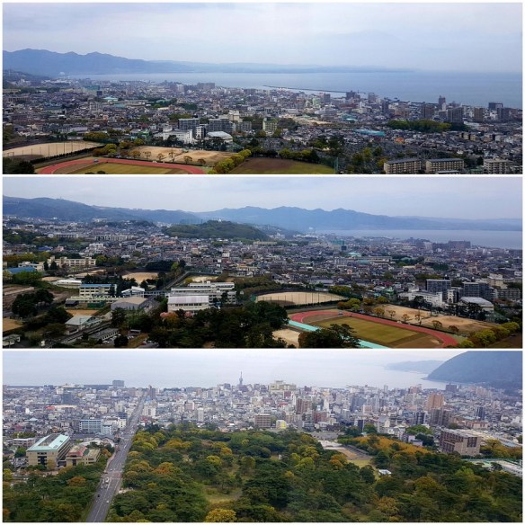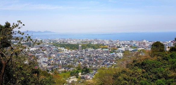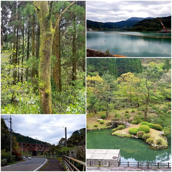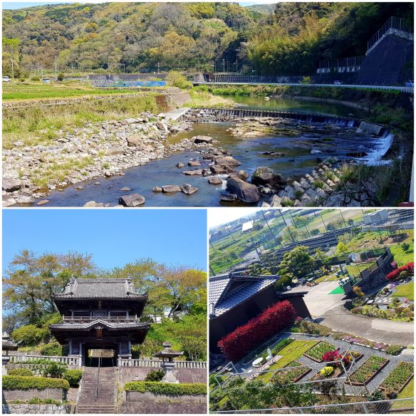 Over the river via the wooden bridge, a ropeway (cablecar) – elevation of 200m leads us up Mt Shiroyama to the Iwakuni Castle built in 1608. The whole precinct is a lovely afternoon out. Lovely walking paths and gardens – the cherry blossoms are finished however there are some pink blossoms equally as attractive in bloom today. Down the mountain there are great picnic areas and water features for the littlies to paddle. The river bed is a parking lot at the moment, I would suspect that in winter it would be the full complement of the river.