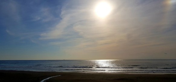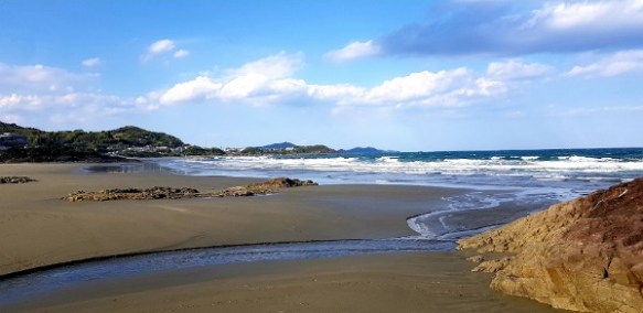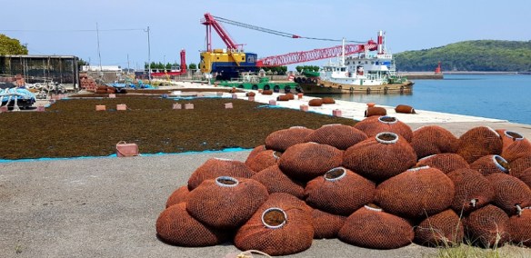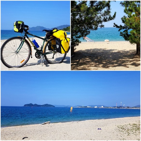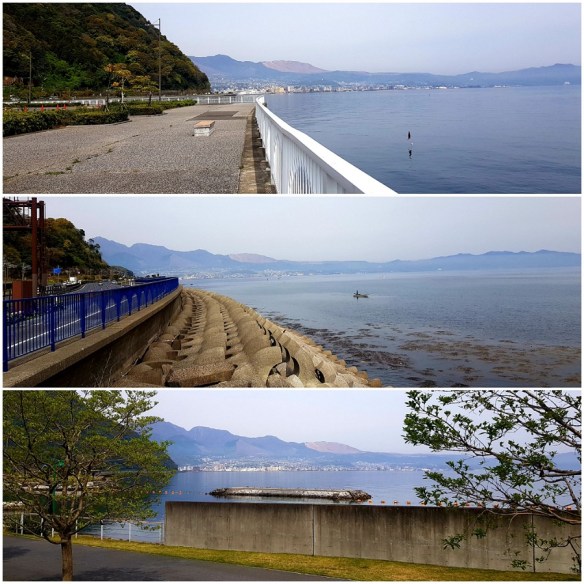 The coast is shared with industry so we were on and off the coast for a while until we could virtually dip our toes in the water; large expanses of coastline with views of the islands closeby. Concrete breakwaters provide small marinas for local fishing boats and a platform for recreational fishing.