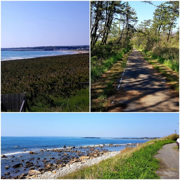 Just as we pass by Chirihama the cycleway improved out of sight, lovely smooth surface, a few beach cafes, fishing villages some rocky outcrops making an interesting outlook.