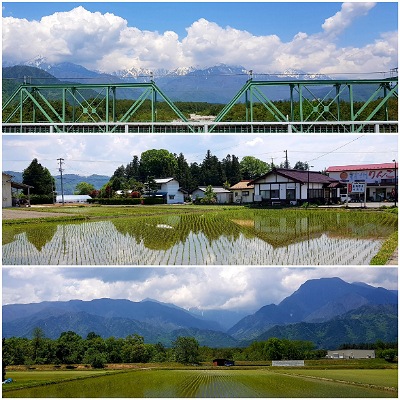 It was an easy ride mostly downhill through the valley. Great views of the mountains on both sides, splashes of snow in the high alps. 3 small lakes equally as scenic. Rice paddies, agricultural and hot houses were all part of our great downhill run.