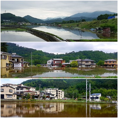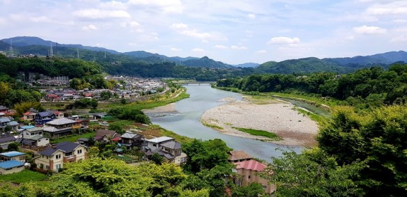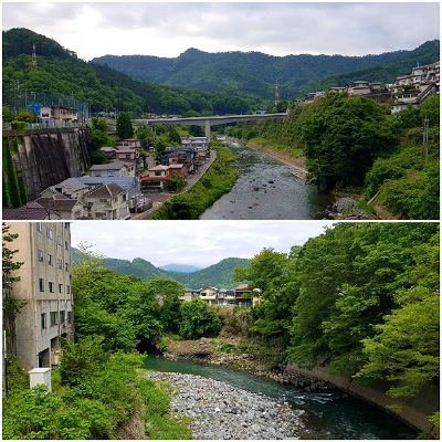 A mostly cloudy day … great breakfast and off again. Mt Fuji was still asleep … we were hoping for a view but it didn’t happen. All was behind us as we descended through the valley with mountains close by. It was very pretty through the mountains, river, a few rice paddies and vegetable gardens. I’m a sucker for reflections in rice paddies. Komoot took us on backroads which was a nice break from the pitted road and many trucks today. Although there were a few times that the main road got our vote.