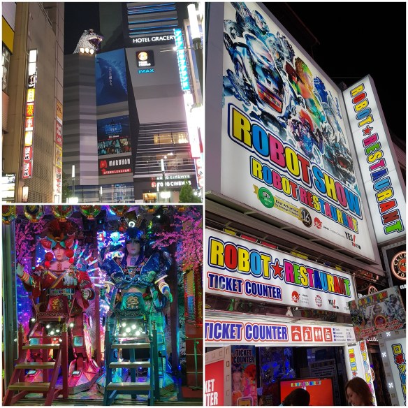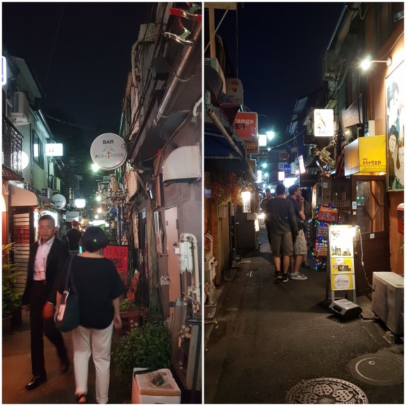 A walk to where the action was in Kabukicho – no street lighting required, the neon lights do enough. Lots of restaurants and entertainment. Nearby is Shinjuku Golden Gai – narrow alleyways full of tiny bars.