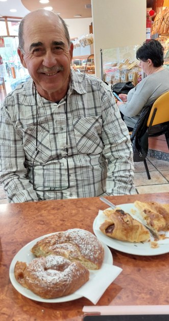 Set out today to a local Cafe for breakfast, John very happy to have a chocolate croissant and coffee.