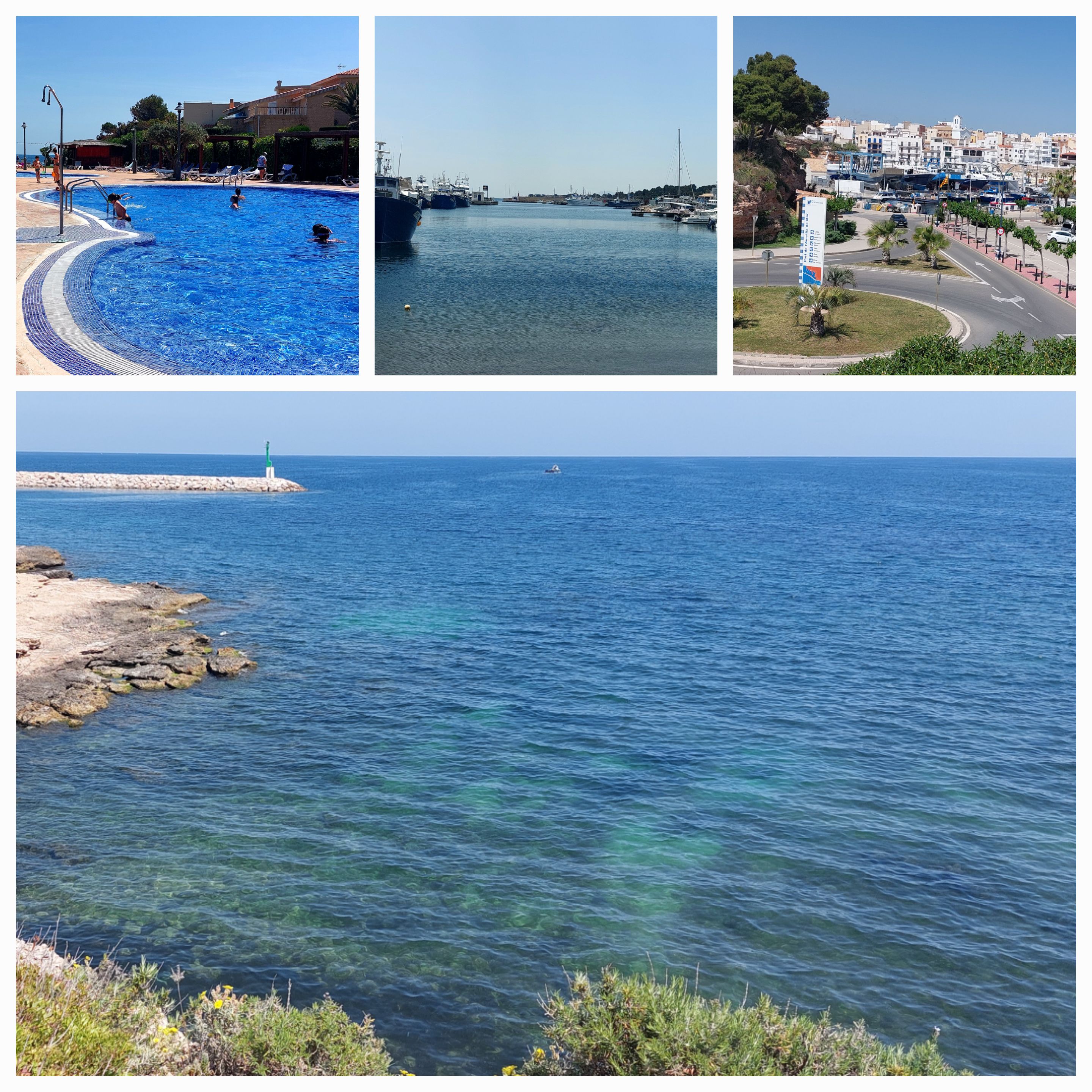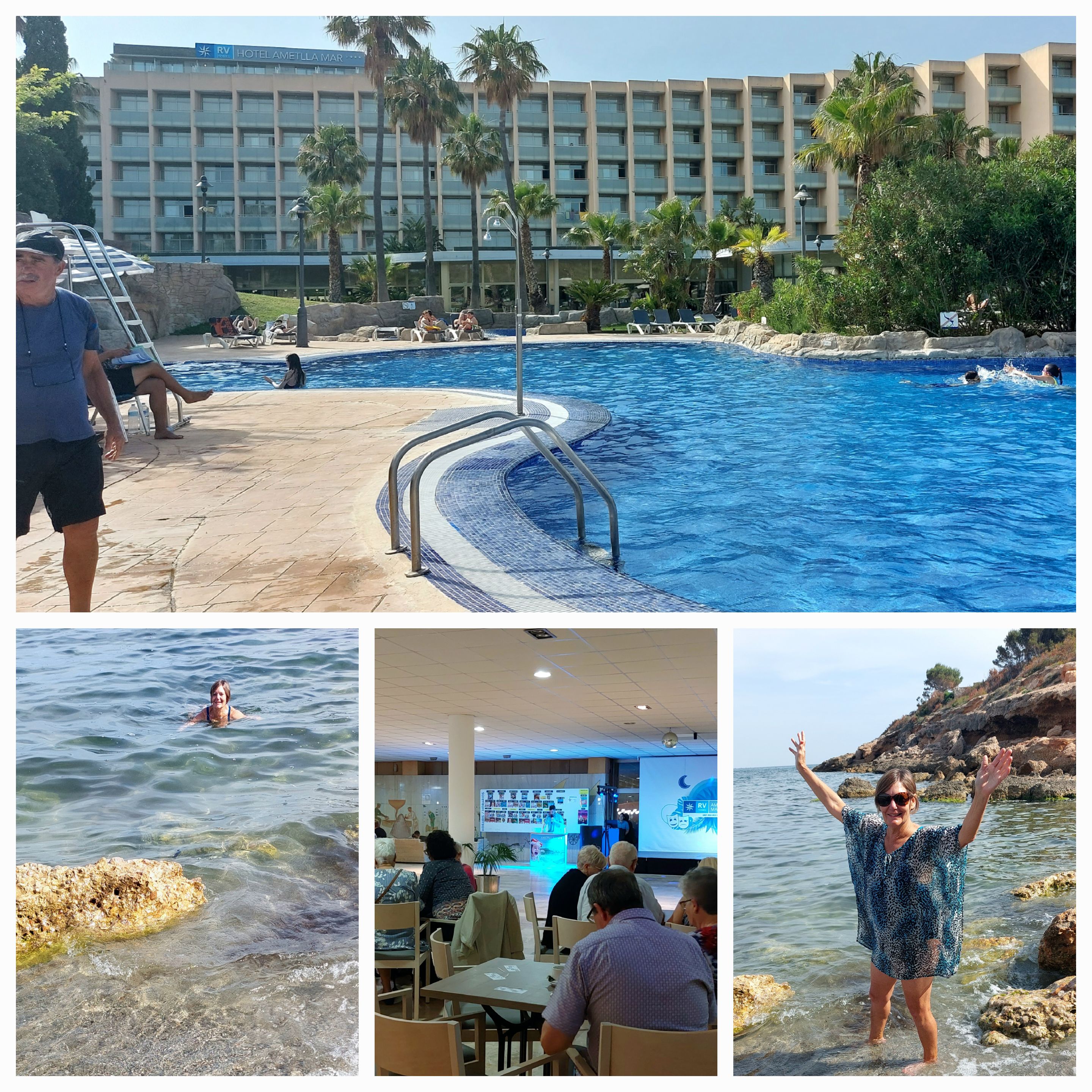 The town is very quiet being a Sunday. There is more action at the resort … families and bus groups are checking in … 3 pools surrounded by sunbathers. I was determined to put my foot in the sea … so went for a swim in the hotels private beach then finished off in the pool.