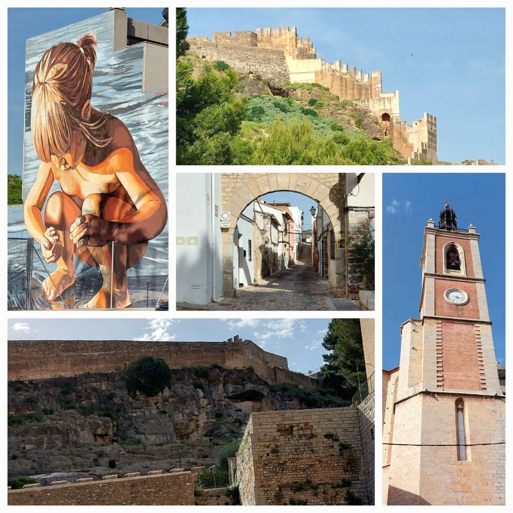 First up we go inland for 7km to see the Sagunto Castle. A straight road with cycle lane at the side and flat. There before us, the castle ruins get closer. We find our way through the old city streets quite a busy town at 9am … a coffee and croissant then we head upwards towards the castle. I think we were a little too early for the tourists … the odd delivery van restocking restaurants and a few local cars going about their business … people live around these hilly streets. Time to get off the bikes and walk … we are laden with panniers. The castle walls rise above us. Too far to ride too many steps … ‘they are just ruins’ says John, ‘yes but that is history!’, I say.