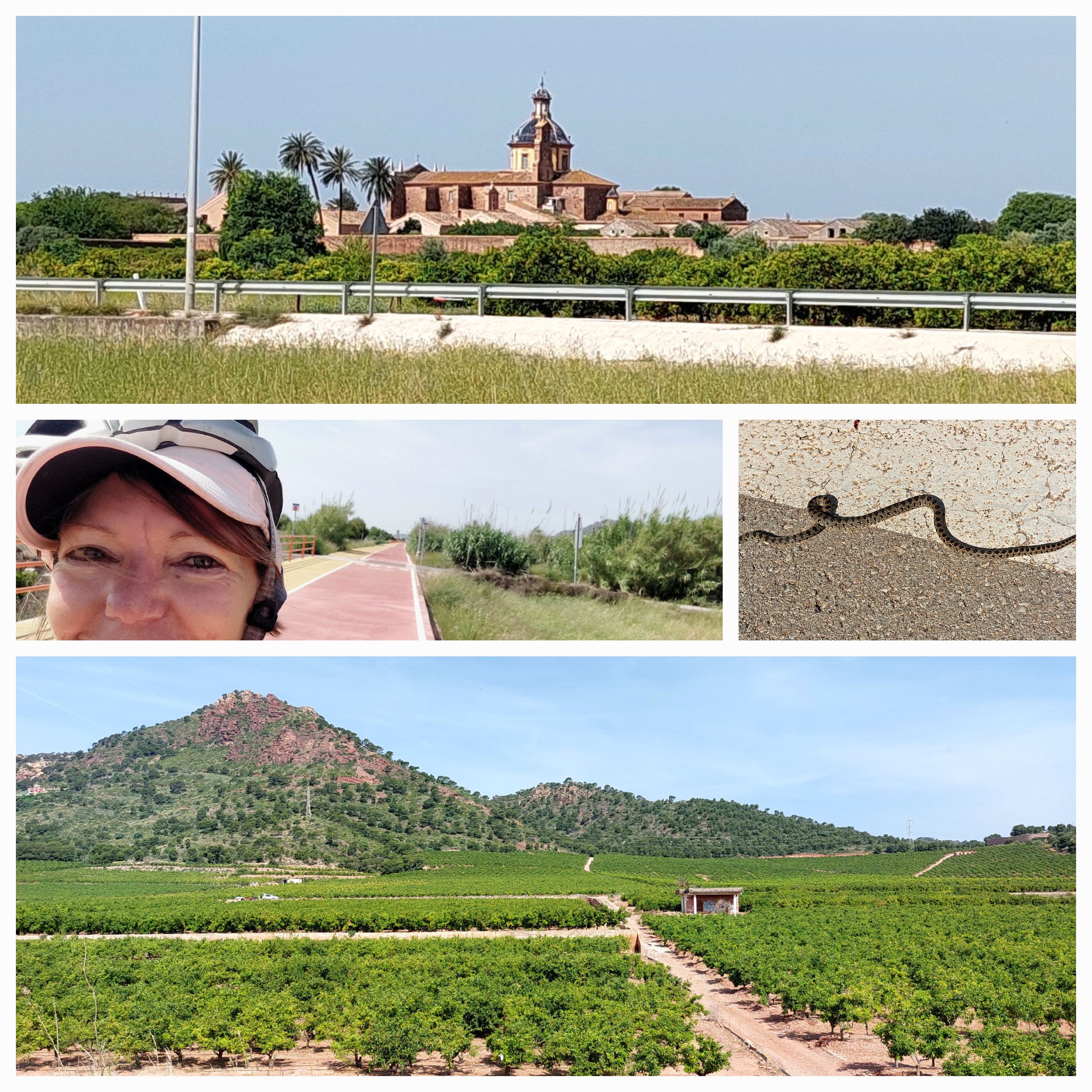 We are still in awe with the cycle paths here, an almost straight line through to Valencia passing through a couple of towns and agricultural areas, stone walled terraced orange orchards look impressive on a small hill. There is a good deal of bike and foot traffic … a great path to go out with your mates.