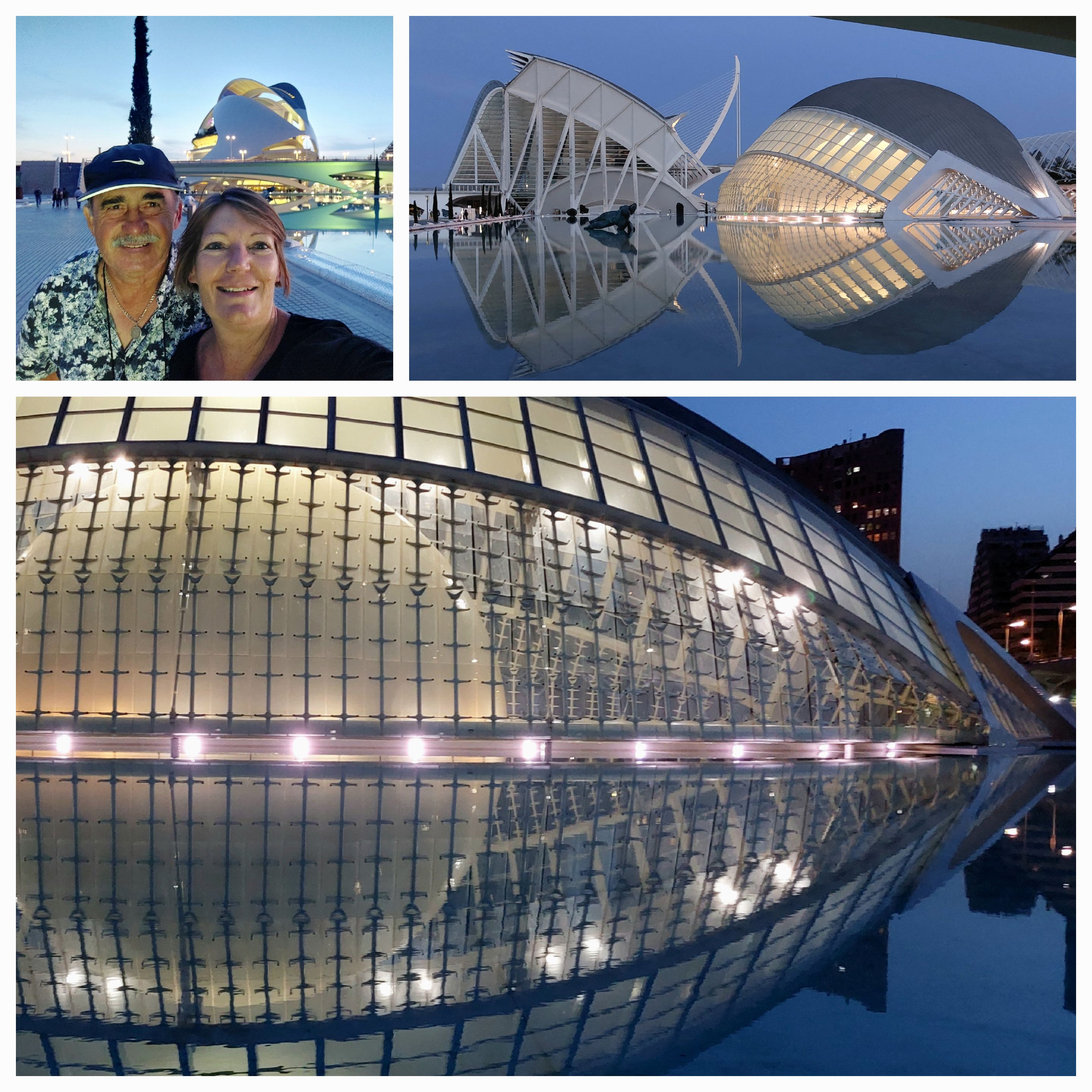 As John would say, ‘I had a bee in my bonnet’ and wanted to go into Valencia tonight to see the City Arts and Sciences Centre at night. He was finally convinced … the train station only 500m away but the machine was difficult to work. A young lad about 15yo helped us using his phone and google translate … and gave us the Metro card he had and we topped it up for our tickets. He probably spent 20 minutes with us and wouldn’t leave until we were sorted. What a trooper he was … his mother should be proud. We gave him a couple of euros for his trouble.