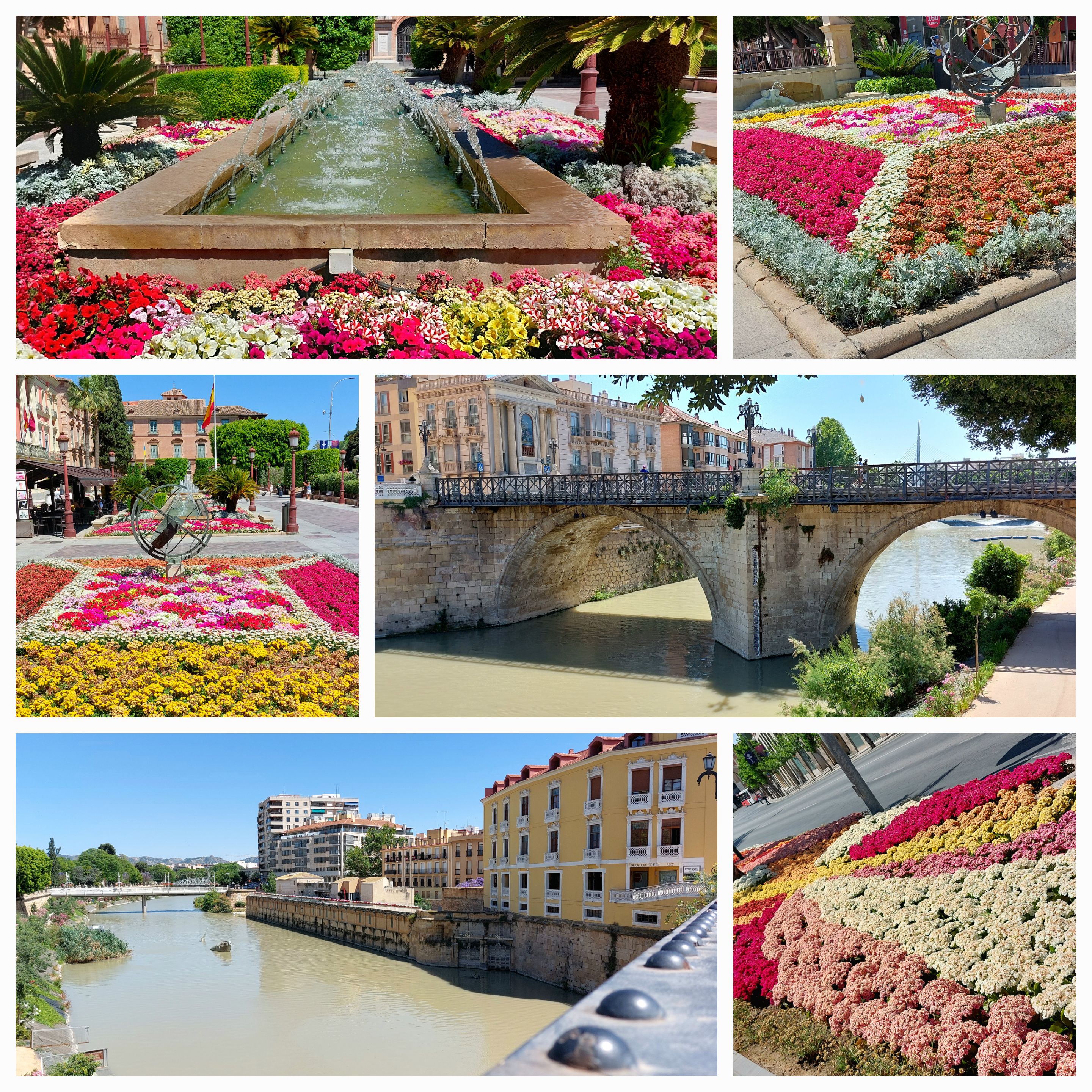 Checking in to the hotel then off to the old town … what a wonderful town, it’s quite hot, long wide boulevards bordered with plane trees, cafes/bars with umbrellas … all part of the ambience and providing shade. A striking feature is the flower gardens around prominent buildings. The river although a dirty colour looks clean and features an old bridge. It’s always nice to wander around the tall narrow alleys. The jacarandas are in full bloom.
