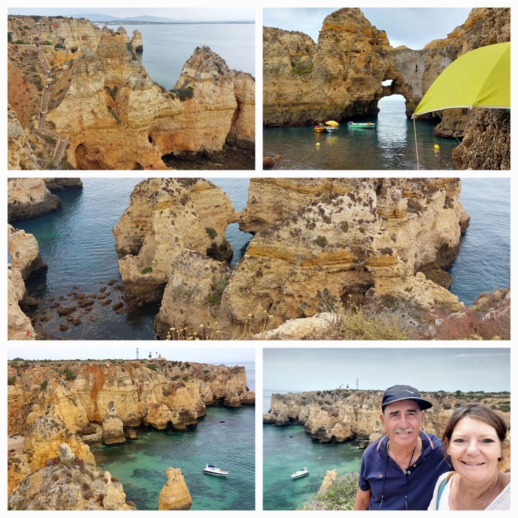 A lovely day in Lagos, the thunder is still rumbling and it’s trying to rain but only a few spots now and again then more rumbling and spots until about 1pm. Fortunately it didn’t stop us from adventuring off on our bikes to the Ponta da Piedade (we are thankful for our bikes daily) a long 2km walk for some a 5 minute job for us. Securely locked to a post and off exploring we go … John immediately apart from ‘wow’, said, ‘we made the right decision’ that was to stay 2 extra nights.