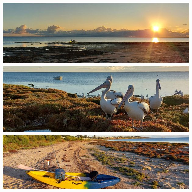The jetty is lively this afternoon, squid is on the menu for a few people tonight. The fish cleaning station is swamped with pelicans waiting for scraps as fishers prep their catch; nearby the steps to the water has Sally the stingray getting a pat and feed. She is said to be 20 years old and a resident attraction to the campers.