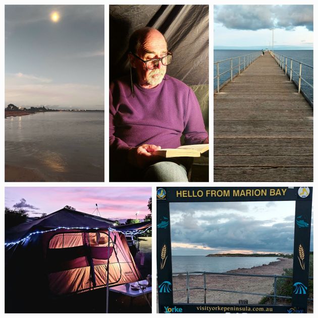 We are all set up in the big tent … it was going to be a one night stay but I made an executive decision when I saw that we are only metres from the beach and 500m from the jetty and the start of the ‘Walk the Yorke’ trail.