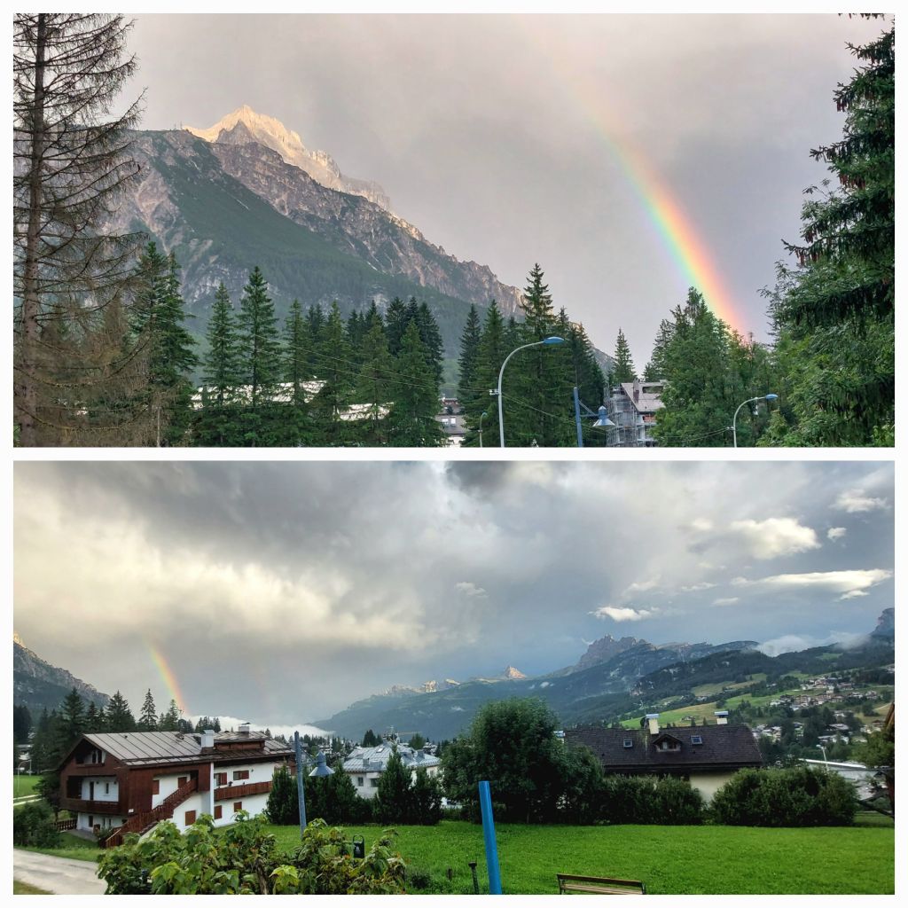 A lovely meal tonight of local produce. Walking back to the hotel with the sun setting over the mountains and rainbow … special times.