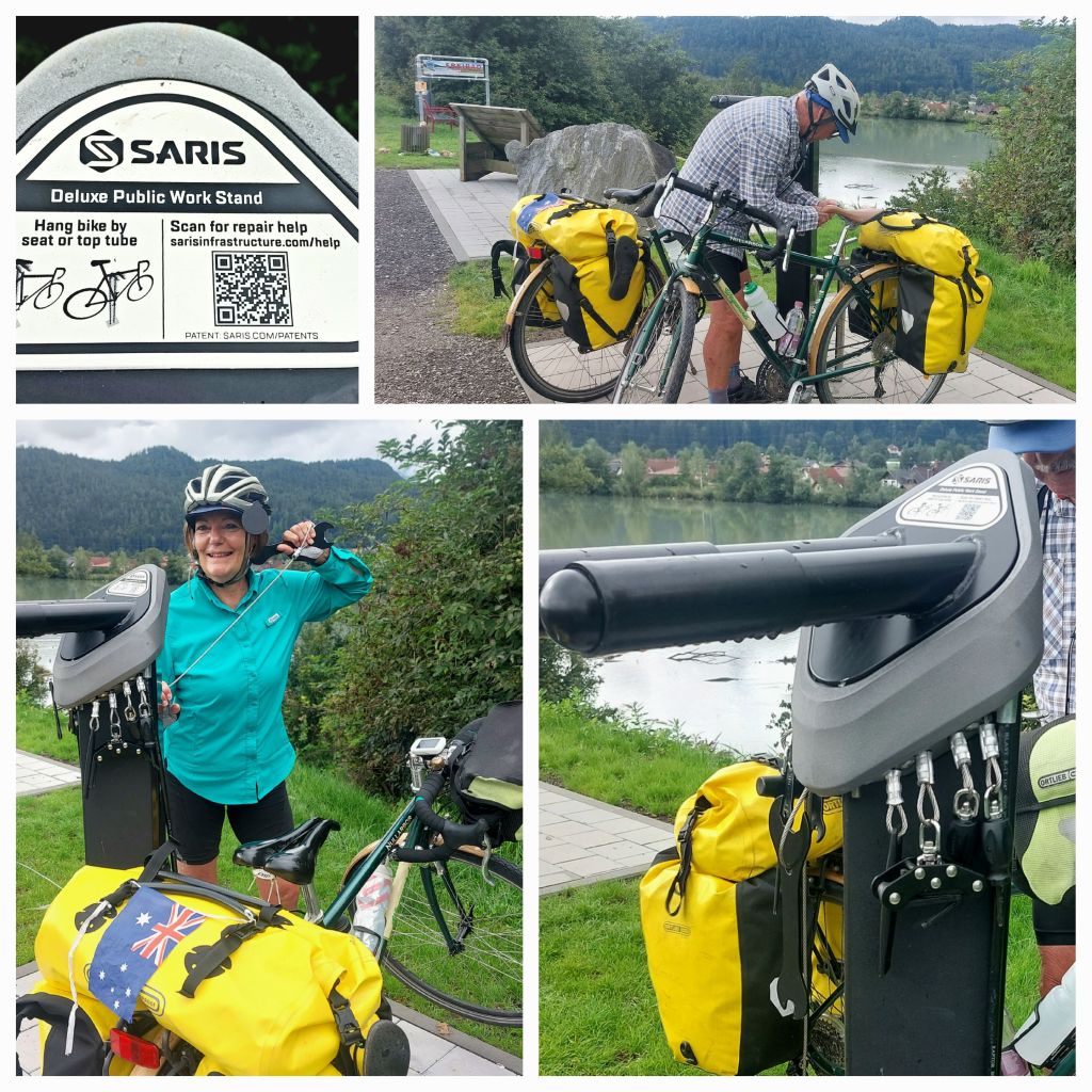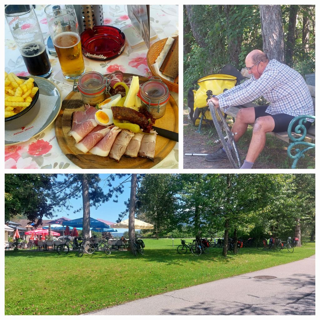 A morning coffee opportunity didn’t eventuate in the little towns; 2km from Ferlach a Gaushaus full of activity; lovely outside grassed area with tables and heaps of bikes parked. Ĺunchtime spot for us and many others.