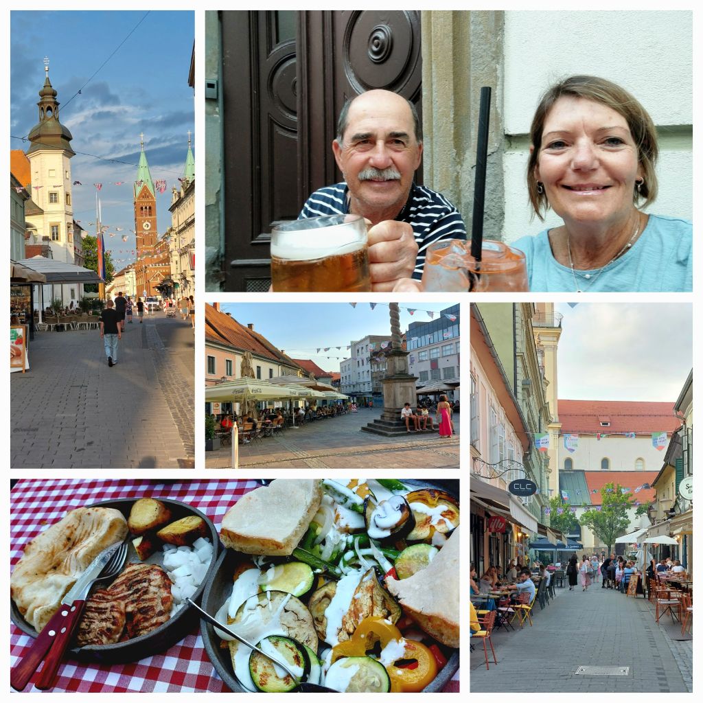 A bit to eat which we had purchased in Dravagrad and off to Maribor on the road.  Finally after 90km feeling ‘stuffed’ a cold beer in the square.  Garmin gave up on me at 77km after complaining I was off course for hours. So I can’t tell what climbing we actually did.