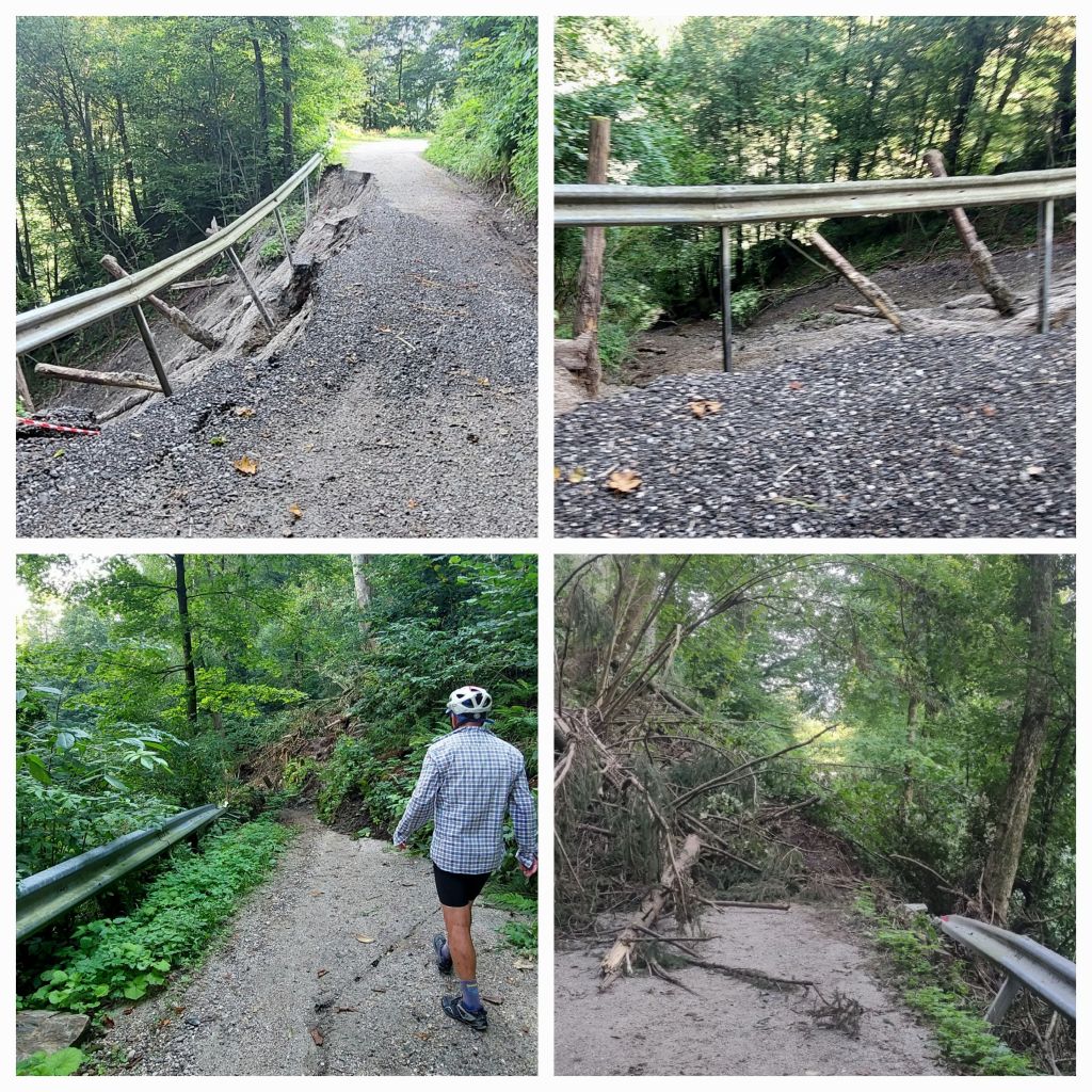 An Italian couple who we met at the hotel … we were able to warn them of the road block. They safely made it across through the landslide and fallen tree … their bikes were lighter than ours.