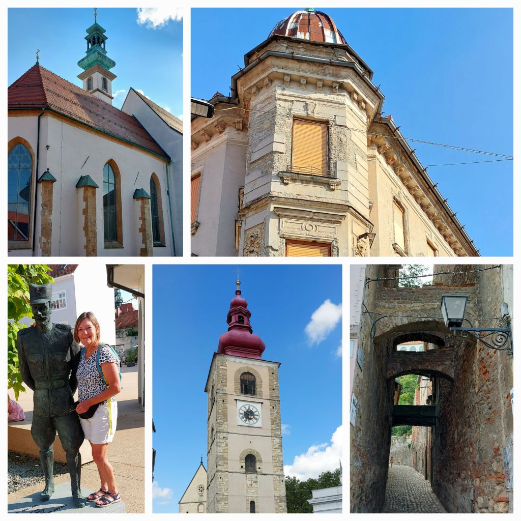 A little tentative on what we are expecting in terms of flooded areas we decided to take a short ride 29km to Ptuj. We were discouraged from the girls in the tourist office to proceed on the southern route so we took the northern. The mountains have now turned into hills, wooded, and some with small vineyards and terraced gardens. We are mainly on quiet roads or good cycle paths. The little villages just roll into each other with a sign post separating them. The houses are up to the usual standard that we’ve seen, tidy, colourful and great veggie gardens. Corn still seems to be the major crop however we are in a wine growing area.