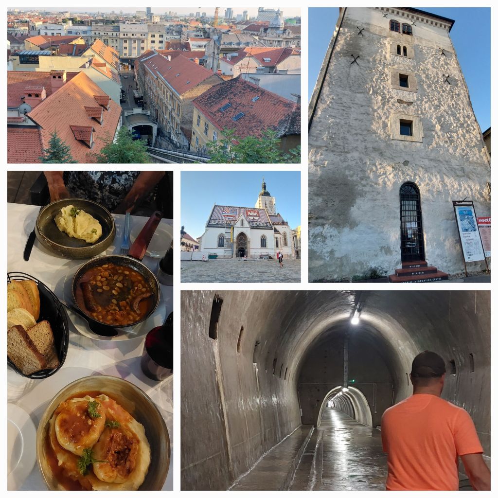 After 4 weeks on the road, today we commuted to a town by train. Varazdin to Zagreb. Actually it was 2 trains and a bus. The conductor explained something on the first train, I nodded and signed that we had to change trains. All good … the connection went well but there seemed to be quite a delay as the locals were getting a little anxious. Second train easy roll on, not like the first which needed a lift up 3 steep steps and panniers removed. The conductor had another conversation … umm … that’s strange we are going straight to Zagreb, as I nod, as I completely understand. I’m following our tracks live on Komoot so we are ready when the station approaches. The train stops, and everyone dismounts and all follow out of the station. It looks like we’re being directed to a bus. Oh no, maintenance again. Bikes again in the bus and off to Zagreb. I remember reading not long ago that in Croatia to rely on buses more than trains …
