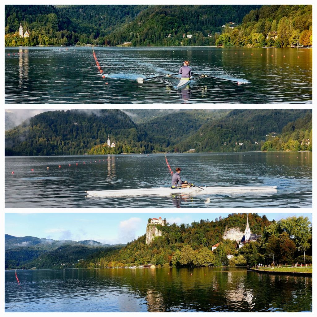 I can’t see the lake from here but after I insist we look and see what it looks like with sun.Β  There are a few rowers out training … it’s like a swimming pool with lane makers stretched across the length of the lake from the Rowing club to the turn around point.Β
