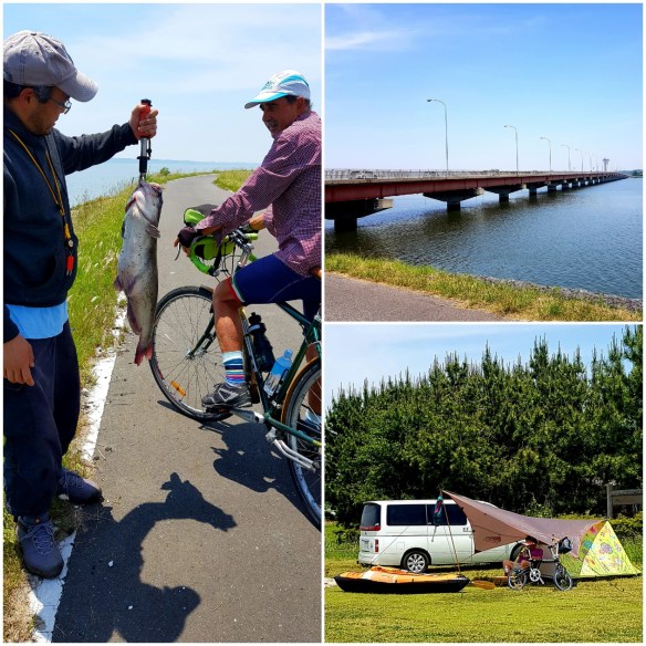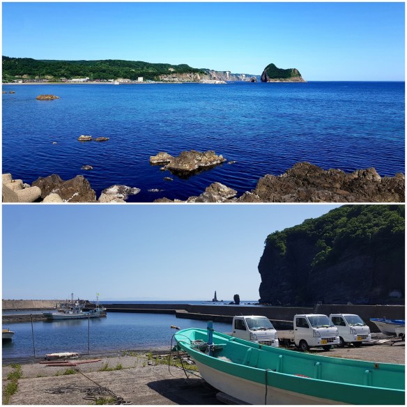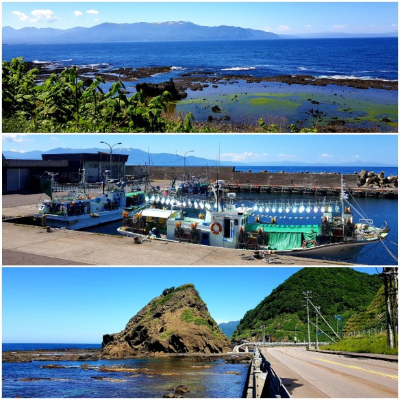 The climb out of Otaru along the coast … the rain spoilt the wonderful views today and overcast sky. Lots of trucks and 1 tunnel. Spectacular views to be had on a clear day of the coast and hills