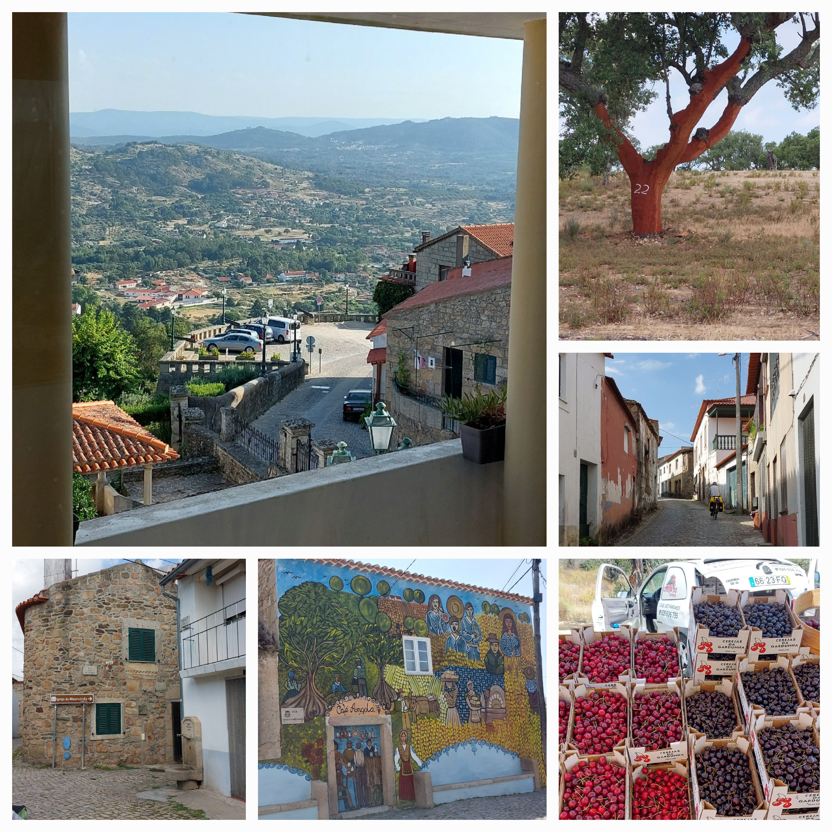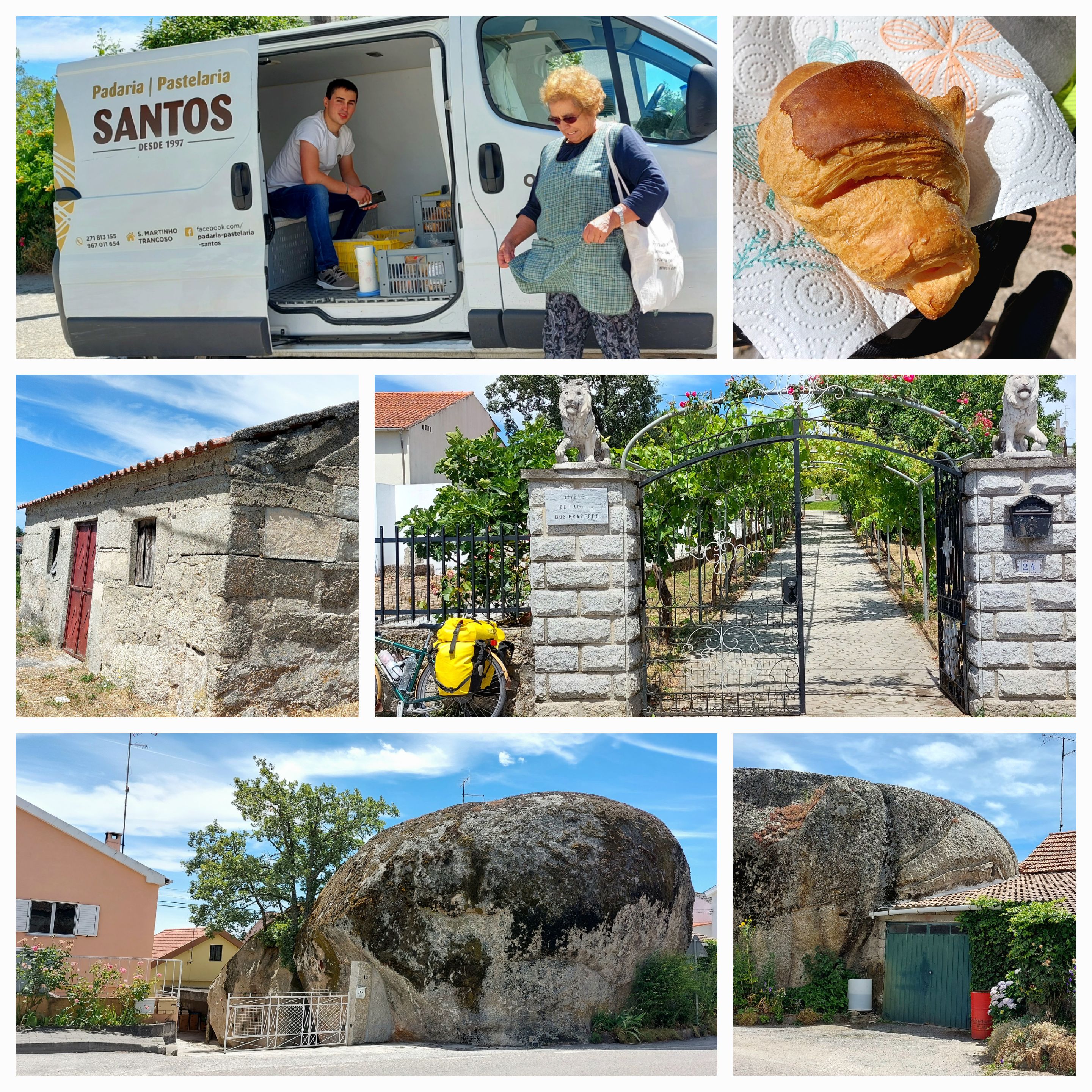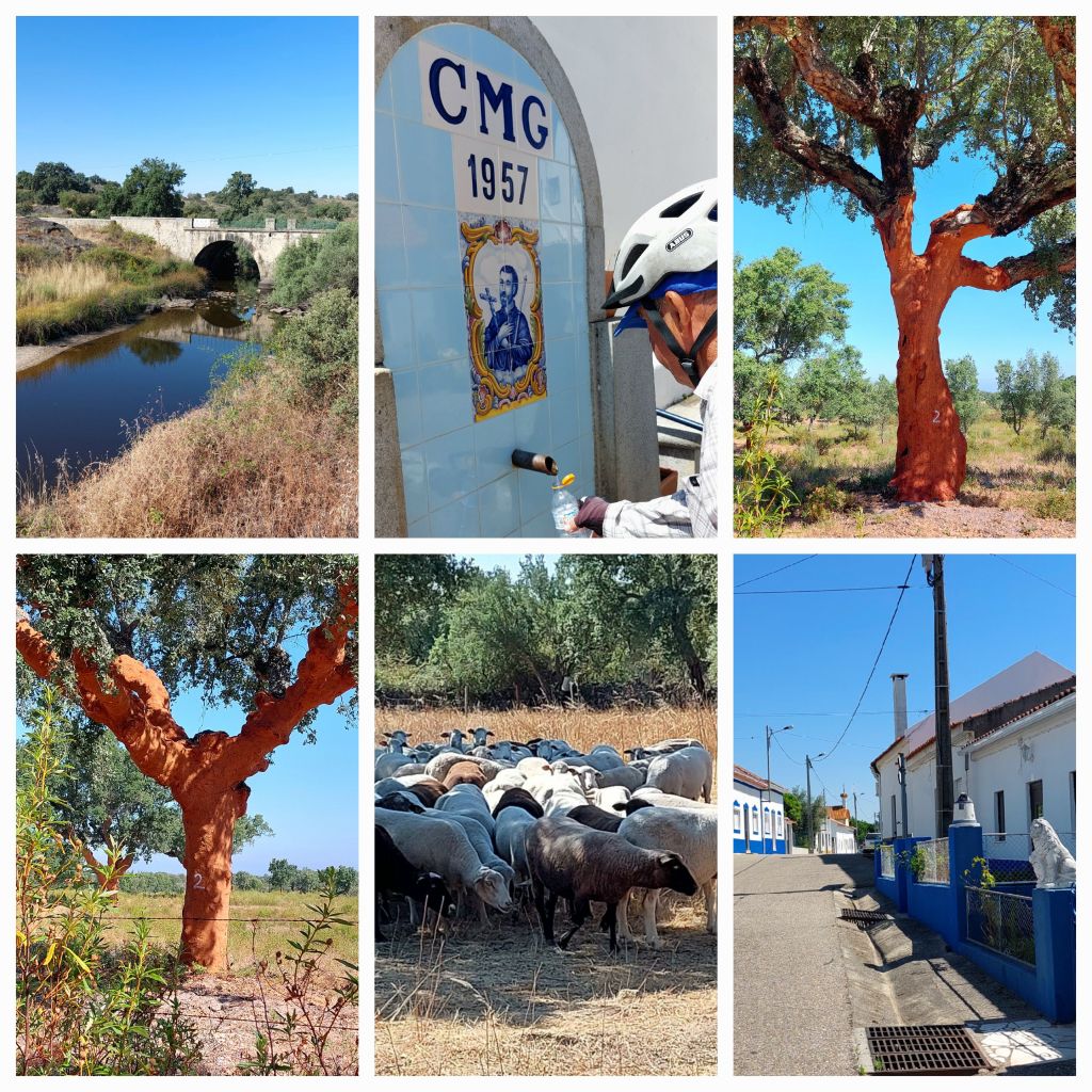 The little villages with the locals on the corner having a coffee and beer; the lady wiping her outside table as her husband is enjoying a beer at 11am … I say, ‘Bon Dai’ John shouts “we are from Australia”. I’m sure tour cyclists don’t venture here. The very little old lady walking down the street we say ‘hi’ to her and stop, she is talking in Portugese, we tell her we are off to Monsanto, she holds my arm … probably telling me it’s a lot of hills and it’s going to be hot.