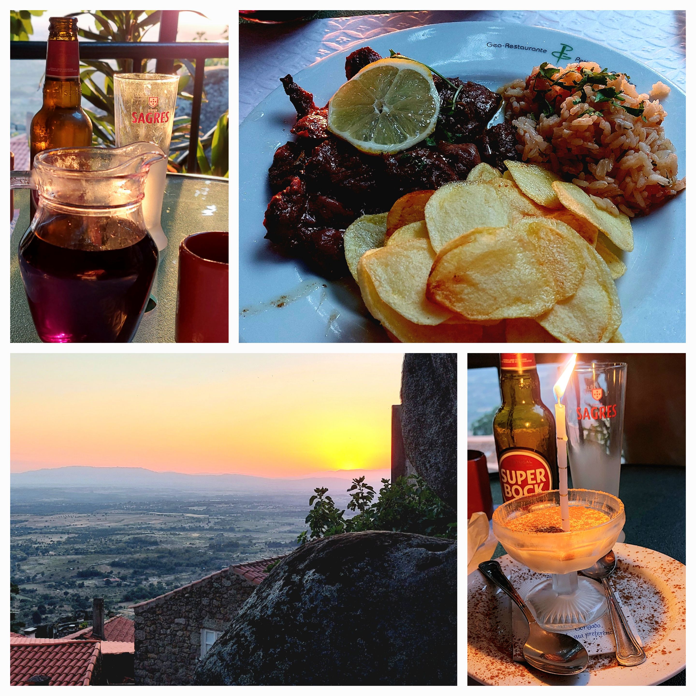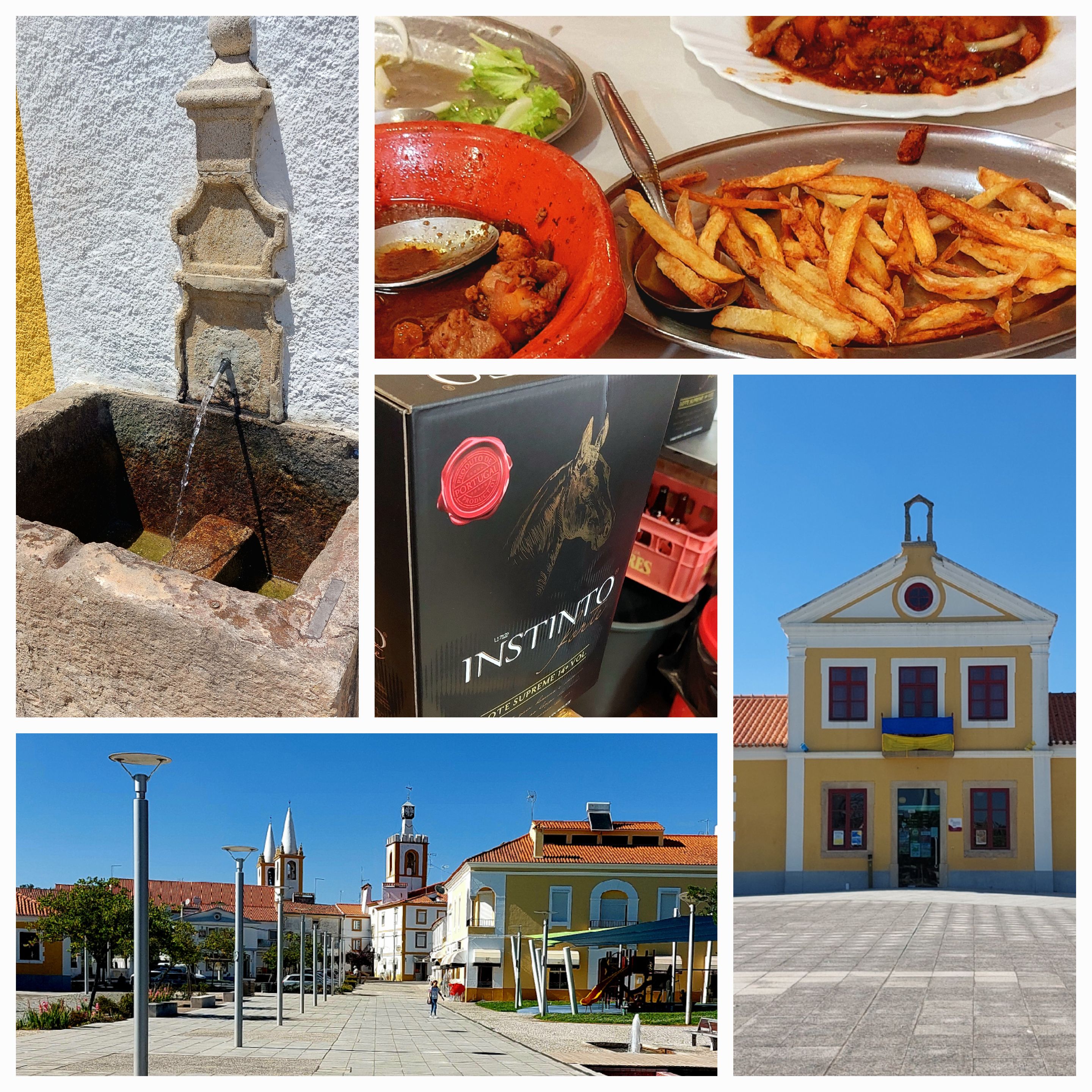 We are in Nisa at 1.30pm gorgeous tidy town we are staying at pension at the back of a bar. Lunch is off the blackboard … something pork. 2 large beers John orders … no! I’ll have white wine … jug please. John’s beer arrives and a large jug of red wine appears … okay that will do. I’ve now become a wine connoisseur … it tastes of cherries. The pork stew was amazingly tasty. Next to us is a young man who acts as interpreter … he’s from Lisbon and visiting his grandmother, first time in 2 years due to Covid. Grandmother is at the table she is 97 next week and looks fantastic.