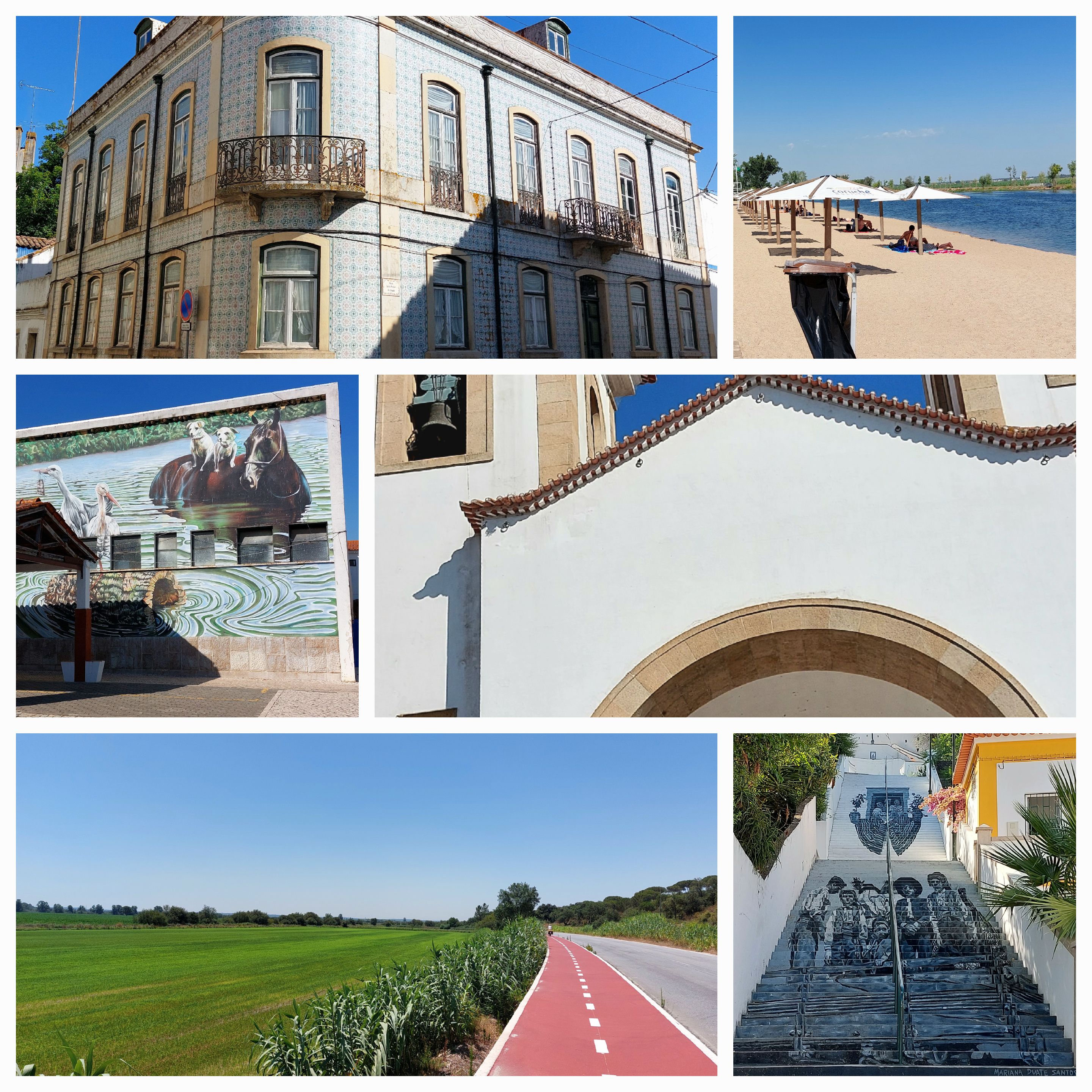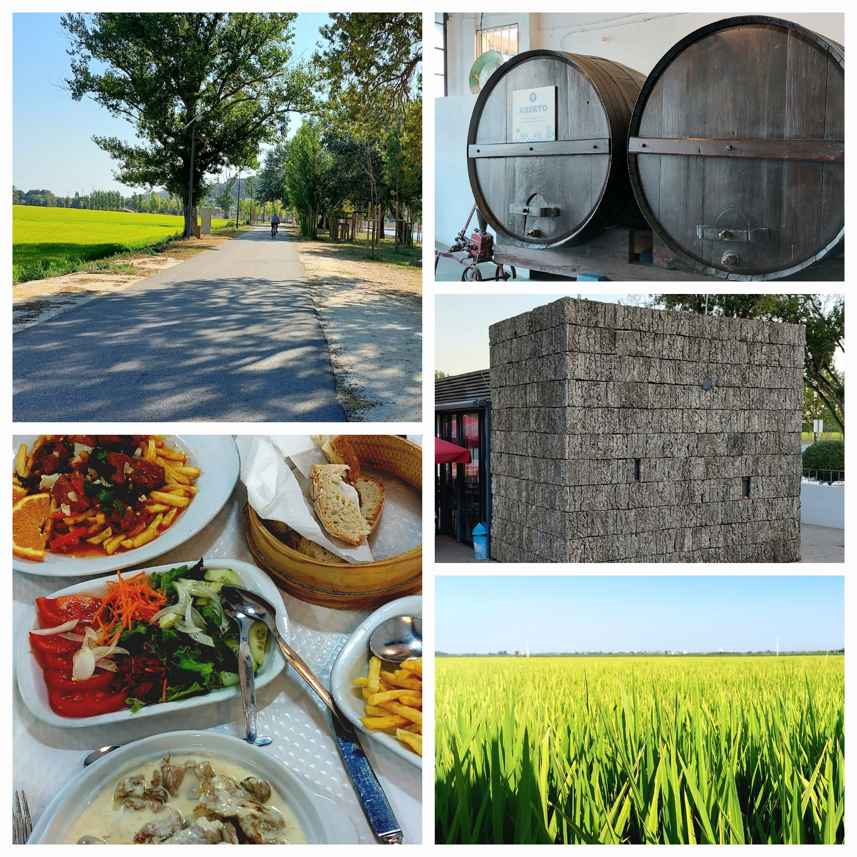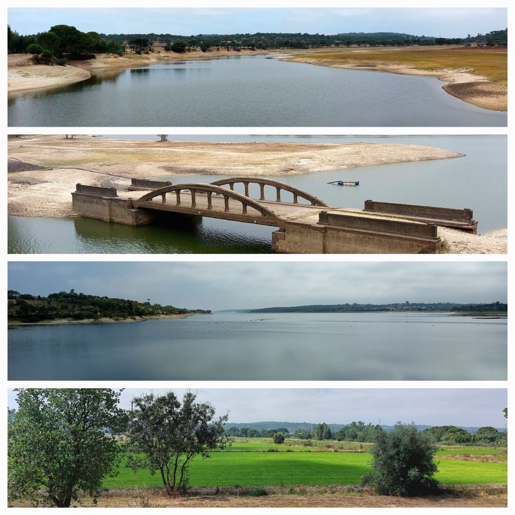 We divert off the road to avoid the trucks onto a EuroVelo, I’ve done some research and it’s a fast hard packed surface with some areas of sand. A great diversion, all shades of green. A canal from the dammed lake/river provides irrigation for the crops in the plain. We are riding through rice and corn fields. A lovely quiet ride then onto a red bike path into Coruche.