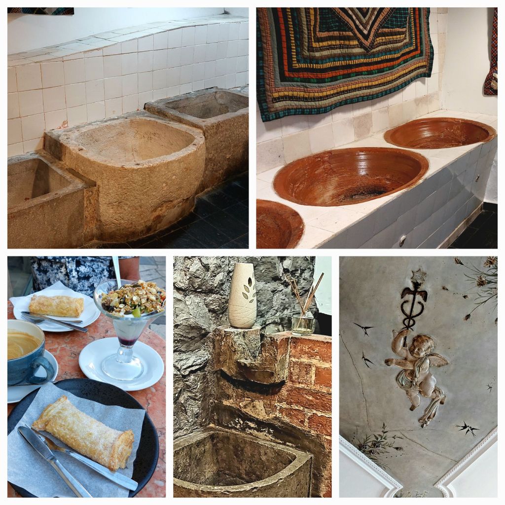 Lots of little villages close together … we are centre of attention as we ride through the town, almost as if there are motion cameras in the street, little old ladies just pop out of their doors. We stop for a coffee, it’s hard to find someone to serve us at this very old cafe. The water fountain in the square, seems to be a popular daily chore as the old folk fill up their water bottles, I join in to fill my water bottle, lovely fresh cool water.