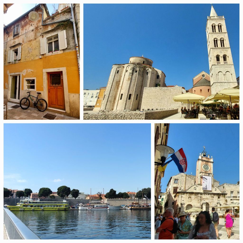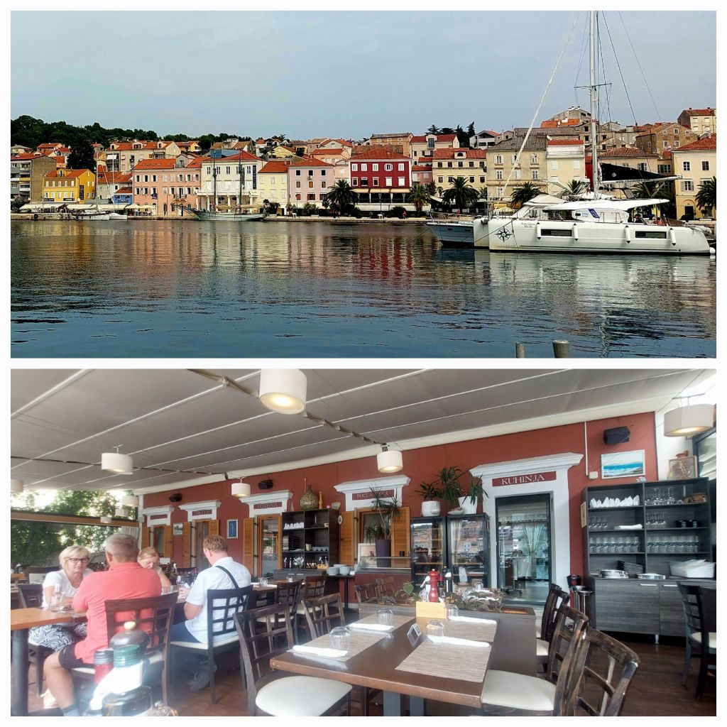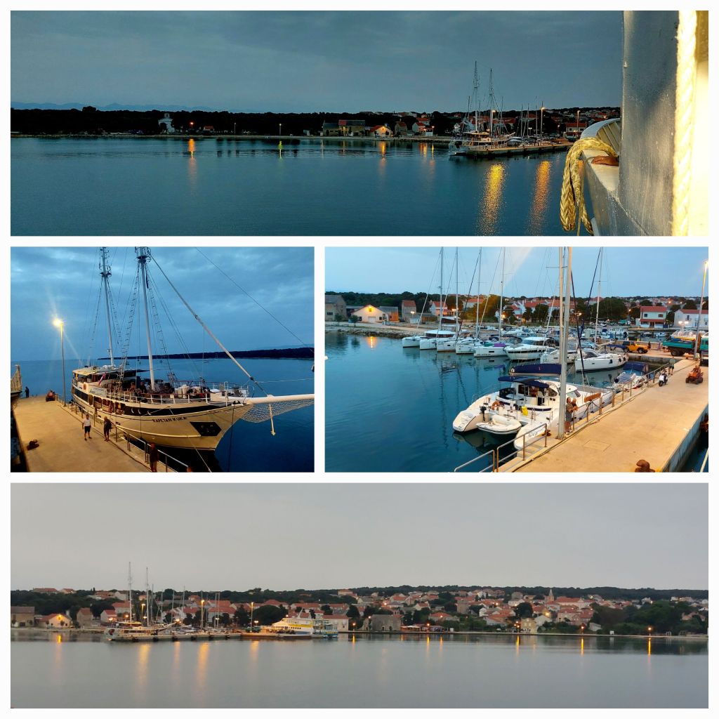 So, we’ve left our accommodation and have a 4pm car ferry to Zadar which arrives at 10.45pm. Lunch at a restaurant overlooking the marina, we eat slowly our pasta dishes, bread is delicious and fresh, sour dough I’m sure, dipped in olive oil, I might get snobbish with my olive oil at home. Who needs butter.