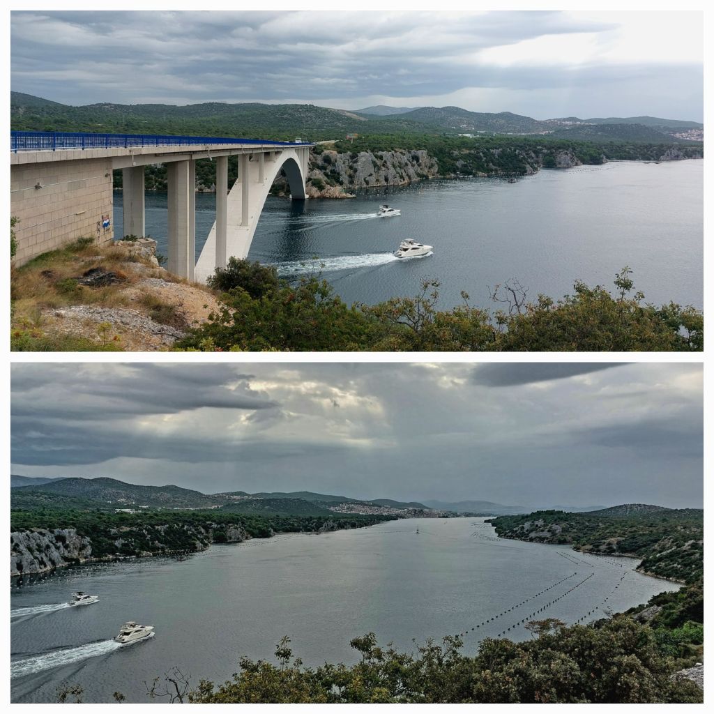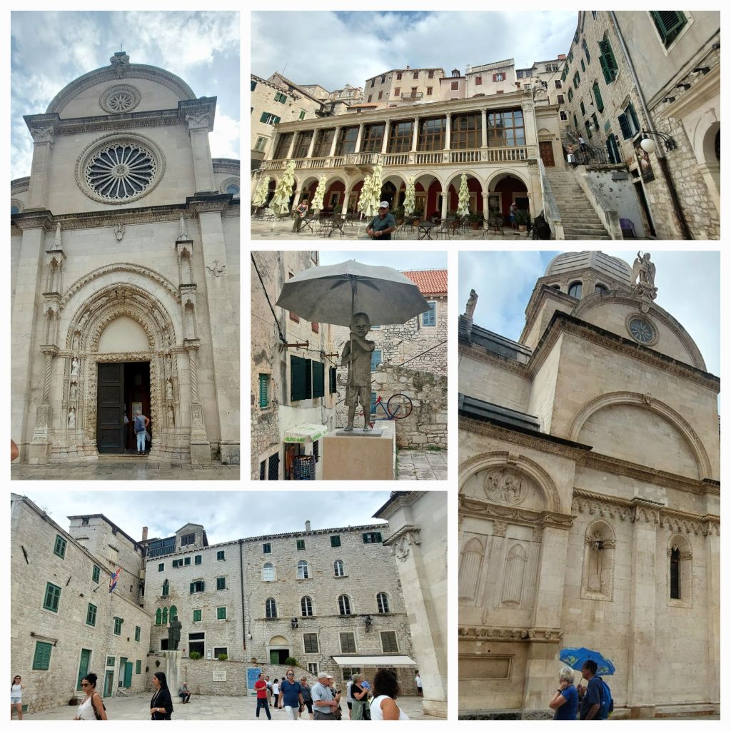 Overcast and a small rain shower as we leave Tribunj. A quick 20km ride into Sibernik … maybe we should have stayed there tonight. Lovely old town, with shiny cobblestones and windy alleys.