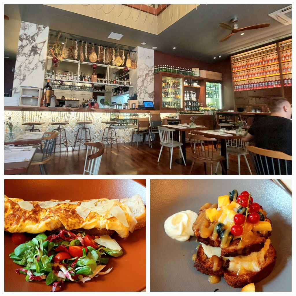 Another downpour … a quick trip to Spar supermarket … how they transform these old buildings to have a great supermarket, bread rolls, cheese, prosciutto and tomato … added bonus … I love playing with the labelling machine at the supermarkets. Lunch in our room … my little scanpan knife is always first to pack.