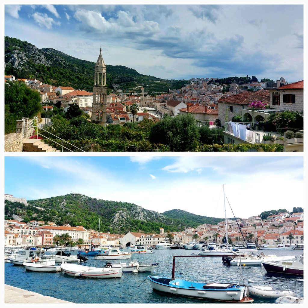 A 6pm catamaran to Korcula, incredible views of the island of Hvar until the sun sets , we arrive in the dark, to see the lights of the bell tower in the old town.